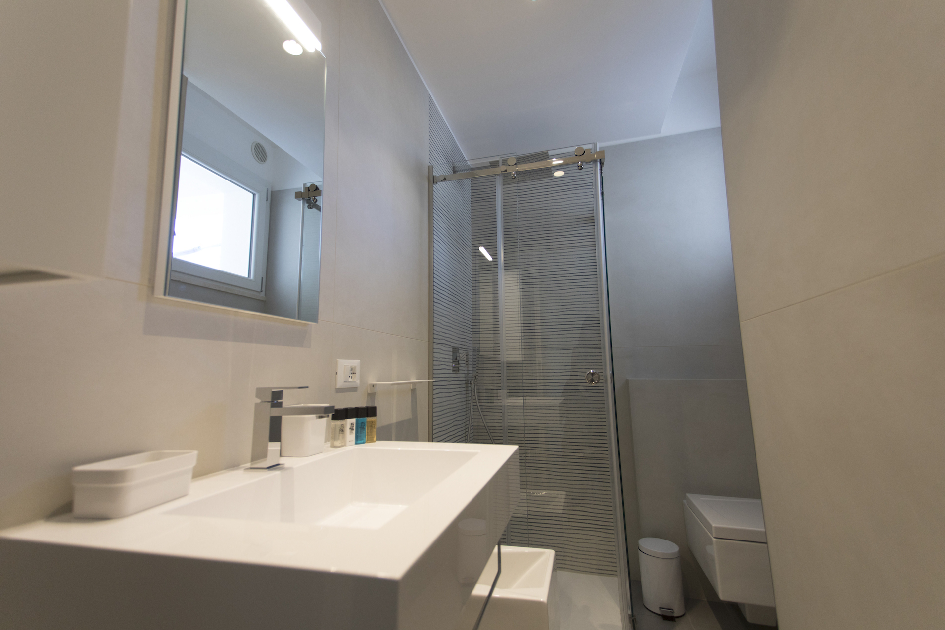 Situato al primo piano, circa 60 mq, sono composti da una zona giorno/cucina, due camere da letto matrimoniali e una camera singola (letto ad una piazza e mezzo) e due bagni.